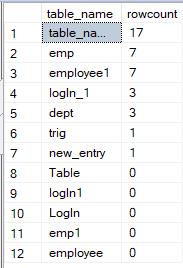 10. Counting rows of all tables at once:
