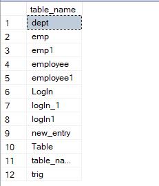 where TABLE_NAME= 'employee1' ;