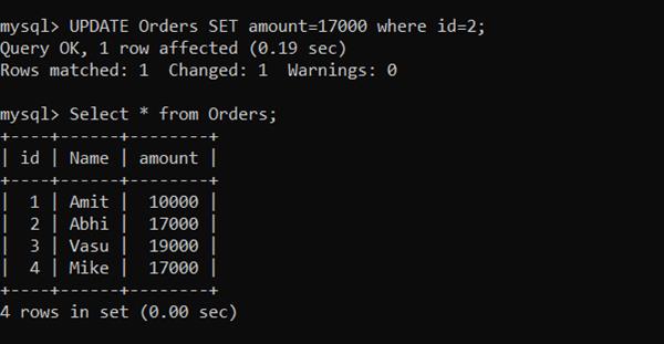 UPDATE Orders SET amount=17000 where id=2;