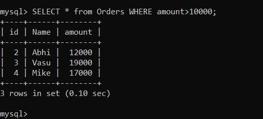 INSERT INTO Orders (id,Name,amount) VALUES (1,'Amit',10000);