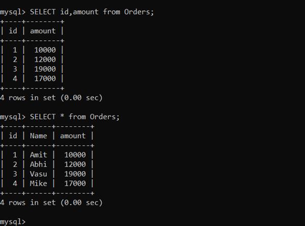 SELECT id,amount from Orders;