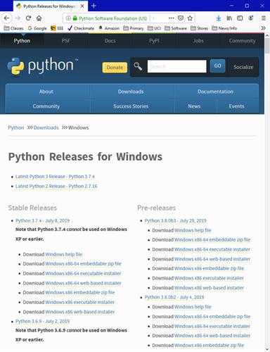 - You can choose according to your operating (WINDOWS/LINUX/UNIX, Mac OS, Other). Click the Windows link for windows OS (two lines below the Download Python 3.7.4 button). The following page will appear in your browser.