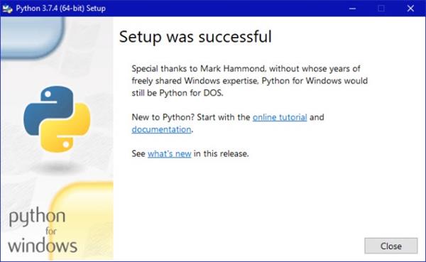 During installation, it will show the various components it is installing and move the progress bar towards completion. Soon, a new Python 3.7.4 (64-bit) Setup pop-up window will appear with a Setup that successfully messaged.