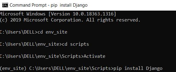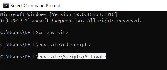 Go to env_site directory by this command (cd env_site).and Go to Script directory in env_site in CMD then run the following command-