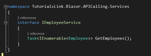 Step 5.1: Add a folder with the name “Services” in the root of your Blazor web application project. Step 5.2: Add a new interface file in the services folder with the meaning full name, as I have given “IEmployeeService.cs”.