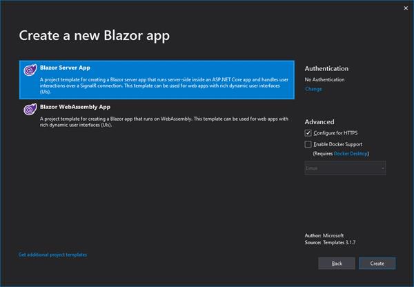 Step 1.3: Select Blazor Application type Blazor Server App or Blazor Web Assembly App which you like to work here in my sample I used Blazor Server App.