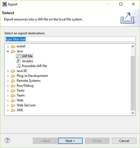 8:- Right click on project -> Export -> Jar -> Add location and name of jar.