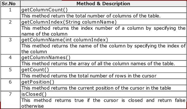 - We will call a method for this class called rawQuery and it will return a resultset with the cursor pointing the table.