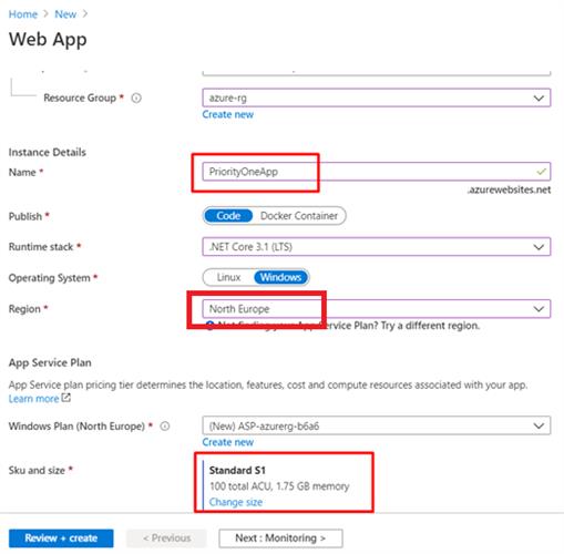 Note: For creating the Front Door Demo, you must have at least 2 instances of your web application. Both applications run in different Azure regions in active mode. For example, I have taken the snapshot of one of my web applications which are provisioned in the North Europe region. The other one has a similar configuration but provisioned in the Central US region.