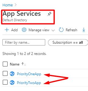 Once both the applications are ready and hosted in their respective regions, go to the App Services option and check them.
