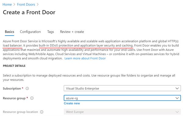 The pre-requisites are now ready. Now move on to create Azure Front Door service.