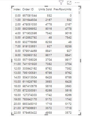 PrevRowUnit=LOOKUPVALUE([Units Sold],[Index.1],[Index.1]-1)+0