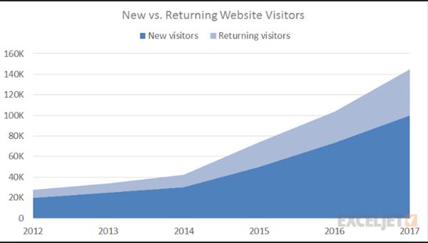 6) Area chart:- It emphasizes the magnitude of change over time by displaying the sum of plotted values, an area chart shows the relationship of parts to a whole. It combines some of the characteristics of a line chart with a bar chart.