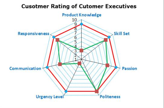7) Radar chart:- Displays change in values relative to a centre point. Radar with the area covered by a data series filled with colour is called filled Radar.