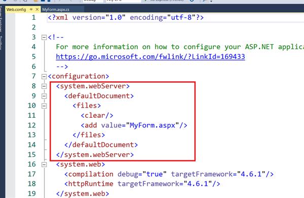 Here in the <add value=MyForm.aspx/>, ―My Form is my Web form.