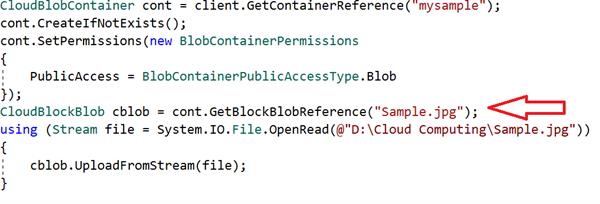 CloudBlockBlob cblob = cont.GetBlockBlobReference("Sample.jpg");