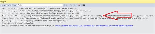 After this, now we can see the status of our publishing. So my ―demoStorage app service published successfully.