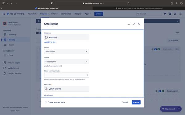 - Issue Type: Select which type of issue it is such as story, bug, and task.