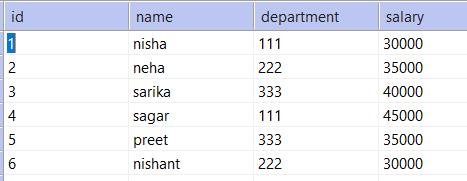 Consider a table with name ‘emp’ has the following data currently: