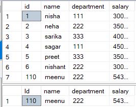 insert into emp values(110,'meenu',222, 54321)