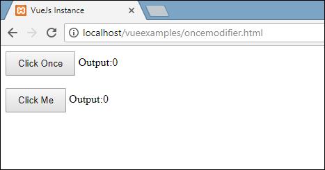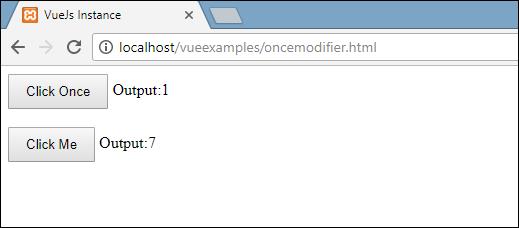 In the above example, we have created two butttons. The button with Click Once label has added the once modifier and the other button is without any modifier. This is the way the buttons are defined.