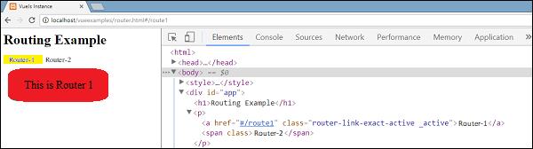 e.g. 1: <router-link to = "/route1">Router-1</router-link>