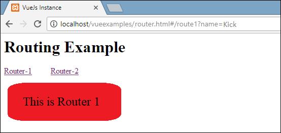 In the URL path, name = Kick is a part of the query string. E.g.: http://localhost/vueexamples/router.html#/route1?name = Kick