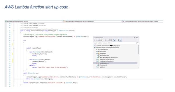 AWS Lambda function get only one input as report name which must be generate and send it across. Lambda function contains switch statement and respective function for each report to get from Web API and one generic function which sends an email.