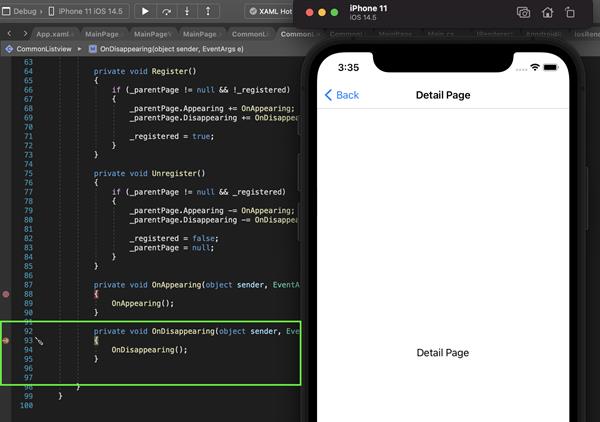 See below screenshot the breakpoint triggered in OnDisAppearing when the view is unloaded.