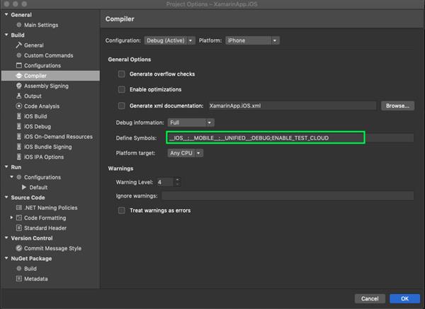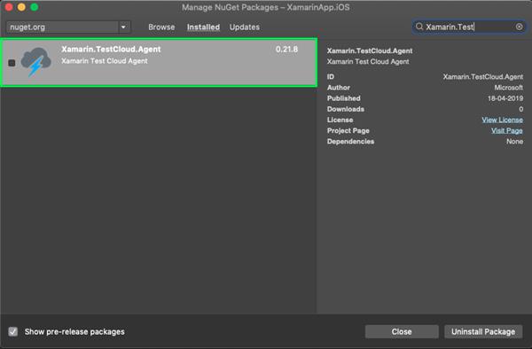 To run tests on iOS, the Xamarin Test Cloud Agent NuGet package must be added to the project. Once it's been added, Add following code into the AppDelegate.FinishedLaunching method: