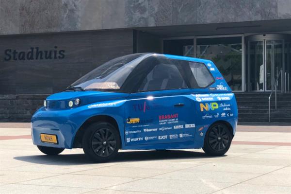 Noah electric city car is built by students from TU Eindhoven University of Technology and is made out of biocomposite with flax and sugar being the main component.