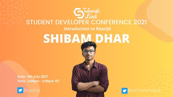 Introduction to ReactJs by Shibam Dhar - TutorialsLink Student Developer Conference 2021 Registration