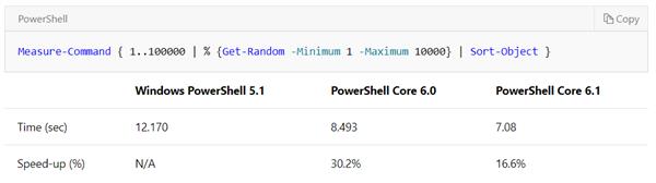 6.1 will support Windows 7/8.1/10, Windows Server 2008R2/2012/2012R2/2016, Windows Server Semi-Annual Channel , macOS 10.12+, Ubuntu 14.04/16.04/18.04 and many more. Many cmdlets have also been introduced in the release that facilitates developers to convert and render Markdown documents in the console. Major performance improvements can also be seen in the updates, speeding up many certain operations significantly, such as : the sorting scenario has improved up to 15%. For a detailed description of the updates, you can read the release notes here.